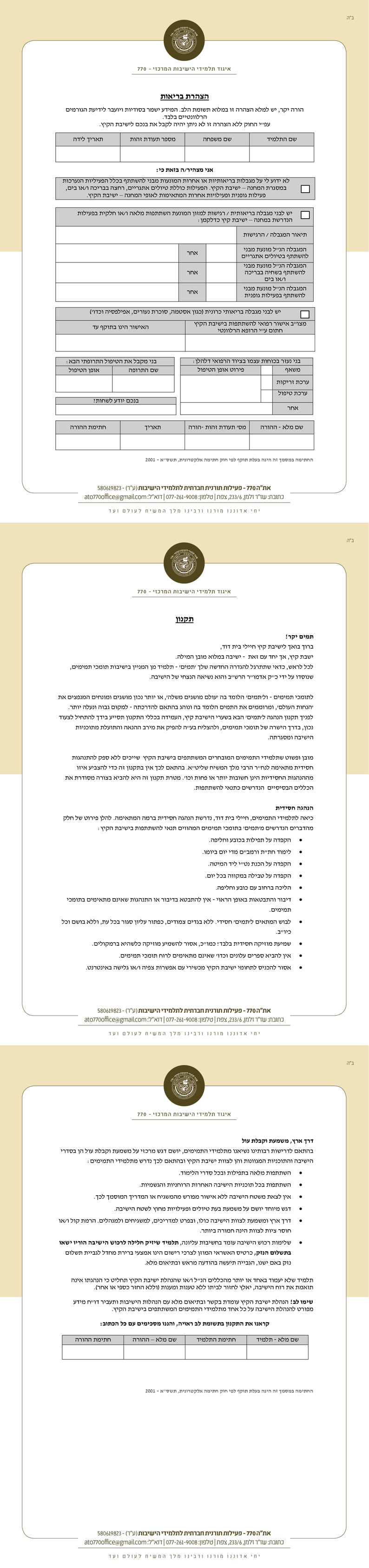 במידה ואתם רוצים לקבל העתק של הטופס נא הזינו את כתובת המייל שלכם.
